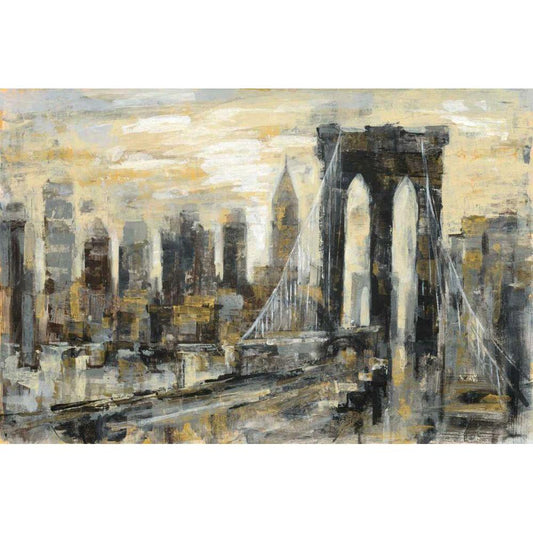 Brooklyn Bridge Gray and Gold Black Modern Wood Framed Art Print by Vassileva, Silvia