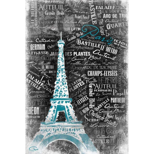 Eiffel Teal Black Modern Wood Framed Art Print by OnRei