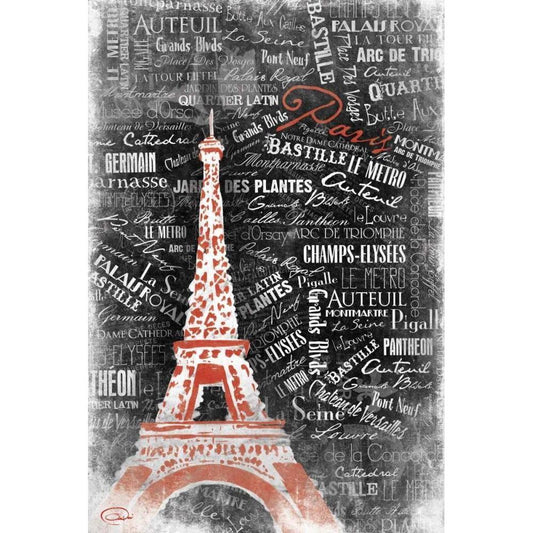 Eiffel NO PARIS Black Modern Wood Framed Art Print by OnRei