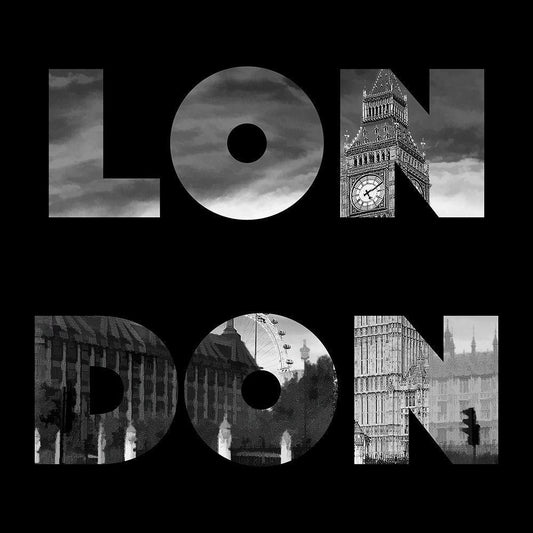 London Typography Black Modern Wood Framed Art Print by Lavoie, Tina