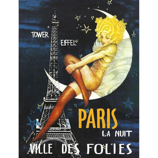 Paris Moon Black Modern Wood Framed Art Print by Vintage Apple Collection