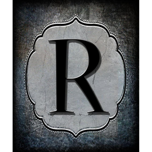Letter R Black Modern Wood Framed Art Print by LightBoxJournal