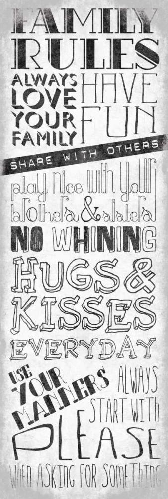 Family Rules White Modern Wood Framed Art Print with Double Matting by OnRei