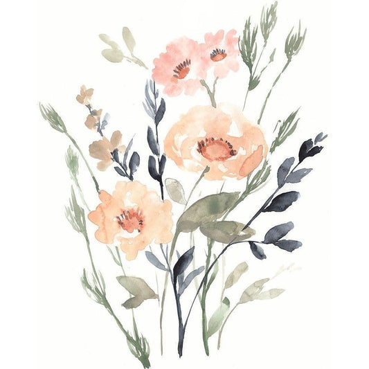 Peach and Paynes Bouquet I Gold Ornate Wood Framed Art Print with Double Matting by Goldberger, Jennifer