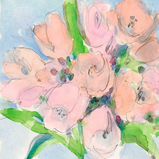 Pink Rosette Bouquet II Gold Ornate Wood Framed Art Print with Double Matting by Moore, Regina