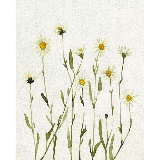 White Antique Daisies II Gold Ornate Wood Framed Art Print with Double Matting by Caroline, Emma