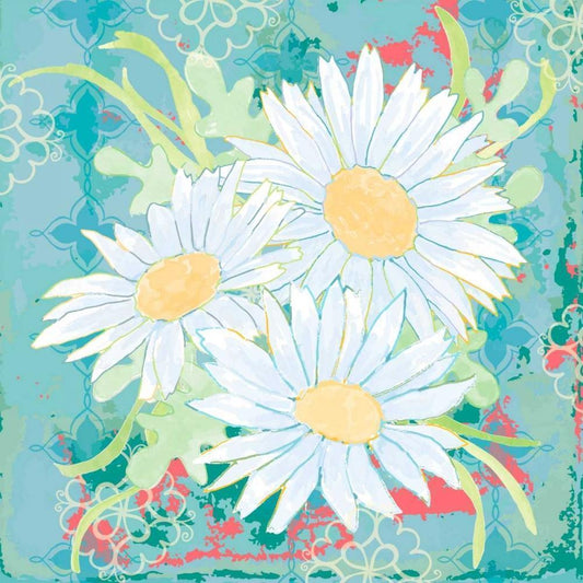 Daisy Patch Teal II Gold Ornate Wood Framed Art Print with Double Matting by Mark, Leslie
