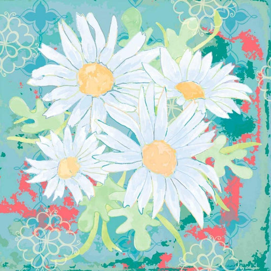 Daisy Patch Teal I Gold Ornate Wood Framed Art Print with Double Matting by Mark, Leslie