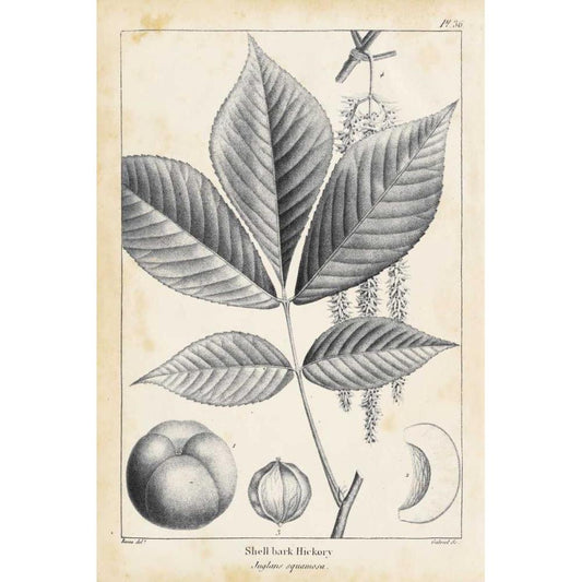 Vintage Hickory Tree Gold Ornate Wood Framed Art Print with Double Matting by Nuttall, Thomas