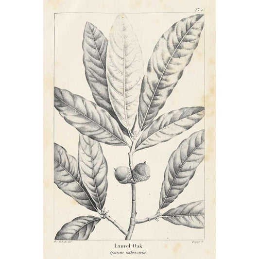 Vintage Laurel Oak Tree Gold Ornate Wood Framed Art Print with Double Matting by Nuttall, Thomas