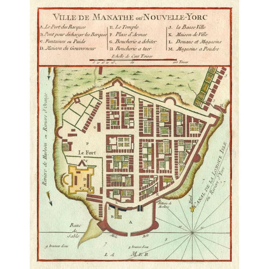 Petite Map of Manhattan, New York Gold Ornate Wood Framed Art Print with Double Matting by Unknown