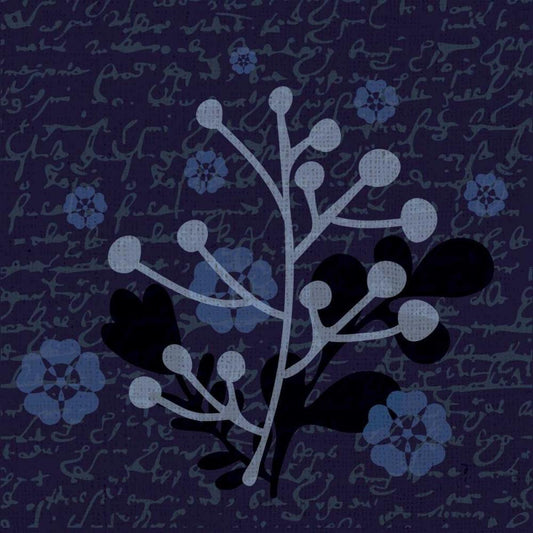 Indigo Olive Branch Gold Ornate Wood Framed Art Print with Double Matting by Hogan, Melody