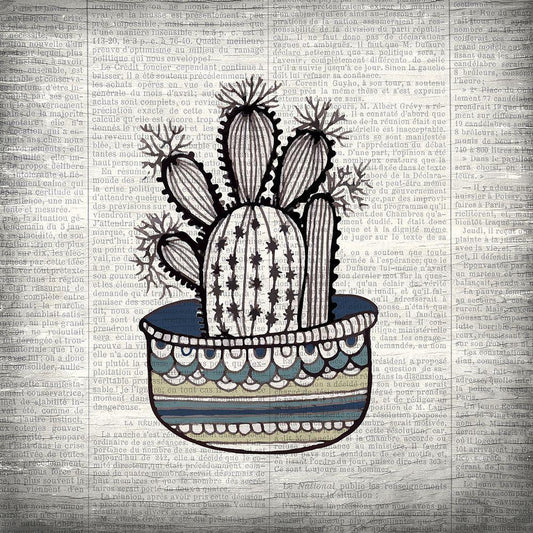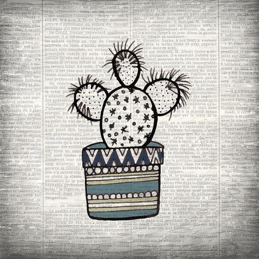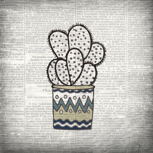 Newspaper Cactus 3 Gold Ornate Wood Framed Art Print with Double Matting by Kimberly, Allen