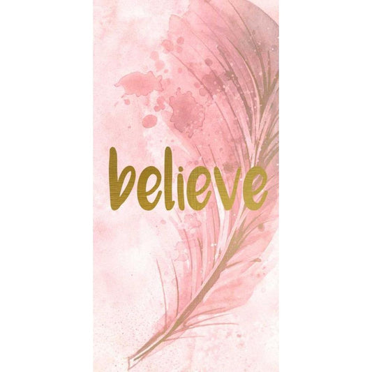 Believe Feathered Gold Ornate Wood Framed Art Print with Double Matting by Allen, Kimberly