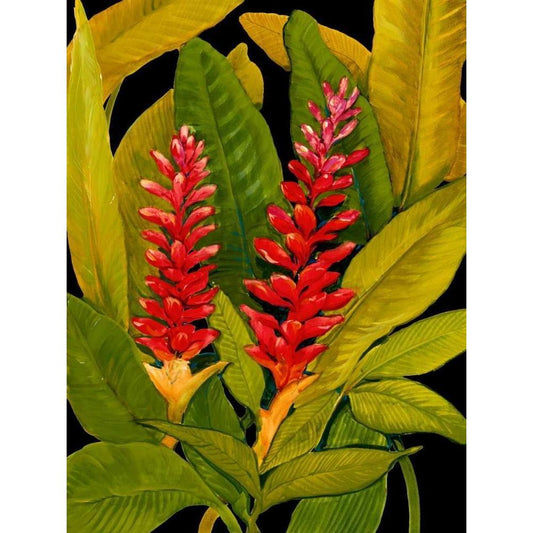Tropical Red Ginger Gold Ornate Wood Framed Art Print with Double Matting by OToole, Tim