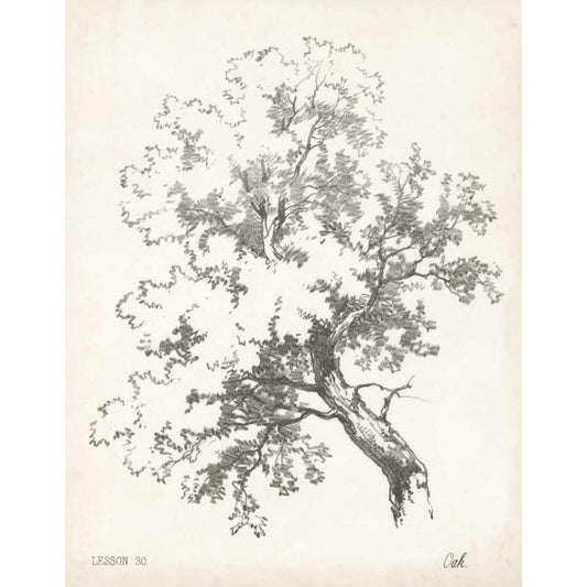 Oak Tree Study Gold Ornate Wood Framed Art Print with Double Matting by Unknown