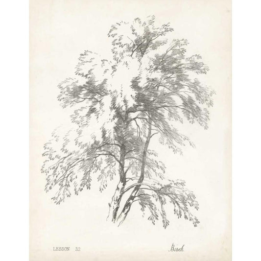 Birch Tree Study Gold Ornate Wood Framed Art Print with Double Matting by Unknown