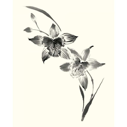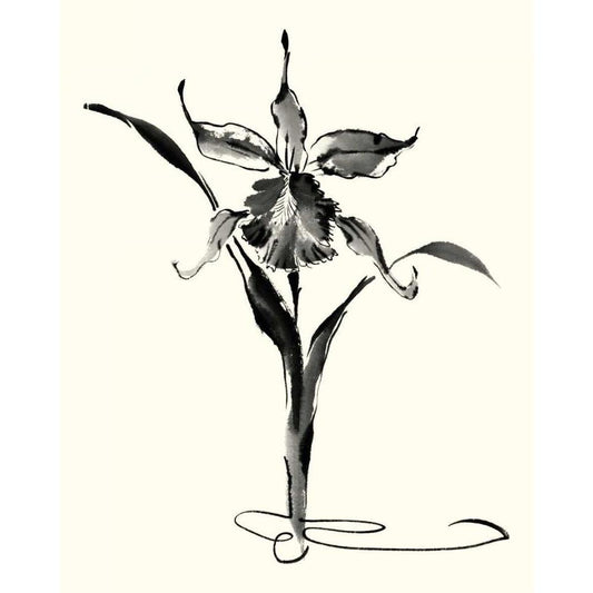 Studies in Ink - Cymbidium Gold Ornate Wood Framed Art Print with Double Matting by Rae, Nan