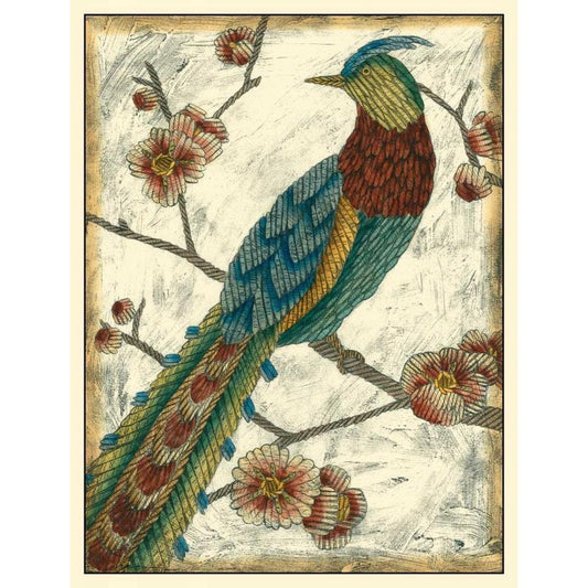 Embroidered Pheasant I Gold Ornate Wood Framed Art Print with Double Matting by Zarris, Chariklia