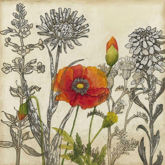 Poppy Whimsy IV Gold Ornate Wood Framed Art Print with Double Matting by Baynes, Cheryl