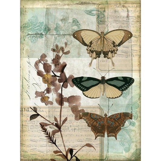 Music Box Butterflies II Gold Ornate Wood Framed Art Print with Double Matting by Goldberger, Jennifer