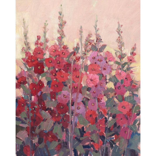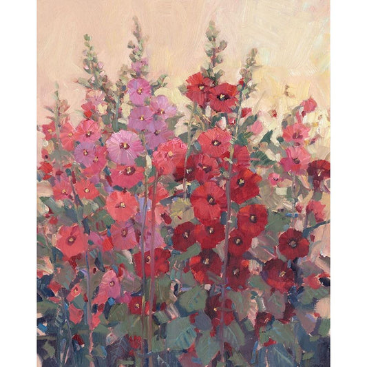 Hollyhocks in a Row I Gold Ornate Wood Framed Art Print with Double Matting by OToole, Tim