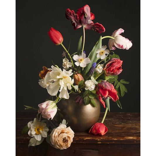 Open Bloomed Tulips Gold Ornate Wood Framed Art Print with Double Matting by McLean, Leah
