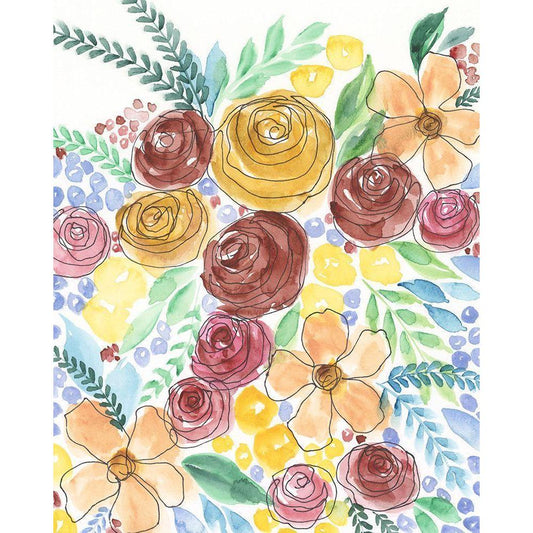 Muddled Flowers I Gold Ornate Wood Framed Art Print with Double Matting by Moore, Regina