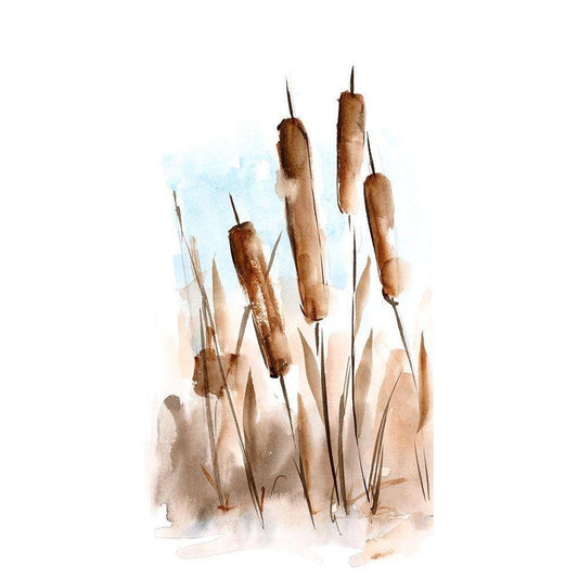 Watercolor Cattail Study II Gold Ornate Wood Framed Art Print with Double Matting by Harper, Ethan