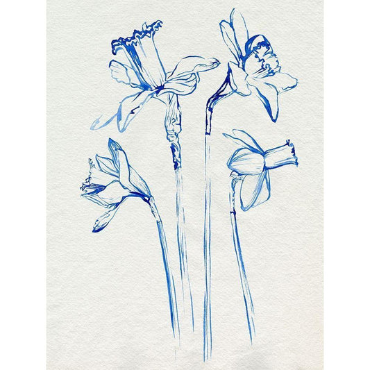 Inky Daffodils II Gold Ornate Wood Framed Art Print with Double Matting by Parker, Jennifer Paxton