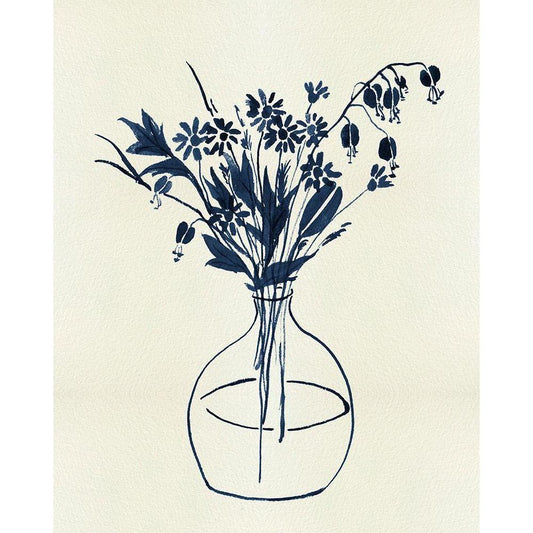 Indigo Floral Vase I Gold Ornate Wood Framed Art Print with Double Matting by Wang, Melissa