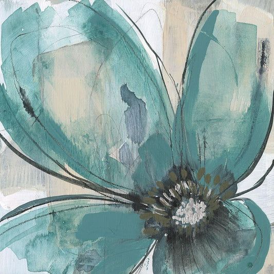 Teal Petals II Gold Ornate Wood Framed Art Print with Double Matting by Goldberger, Jennifer