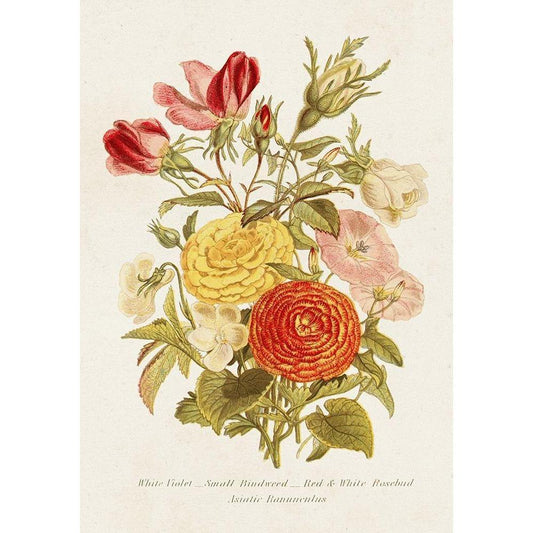 Antique Floral Bouquet I Gold Ornate Wood Framed Art Print with Double Matting by Unknown