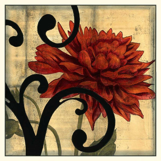 Dahlias and Scrolls IV Gold Ornate Wood Framed Art Print with Double Matting by Goldberger, Jennifer