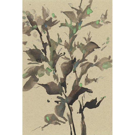 Leaves on Taupe II Gold Ornate Wood Framed Art Print with Double Matting by Dixon, Samuel