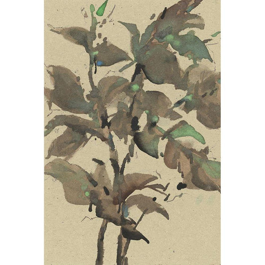 Leaves on Taupe I Gold Ornate Wood Framed Art Print with Double Matting by Dixon, Samuel