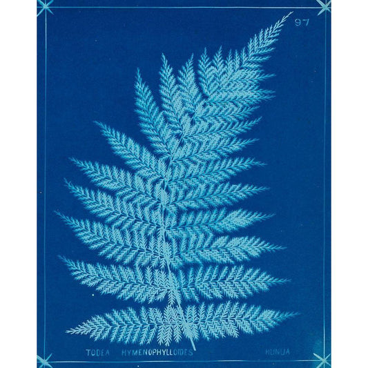 Cyanotype Ferns IX Gold Ornate Wood Framed Art Print with Double Matting by Unknown