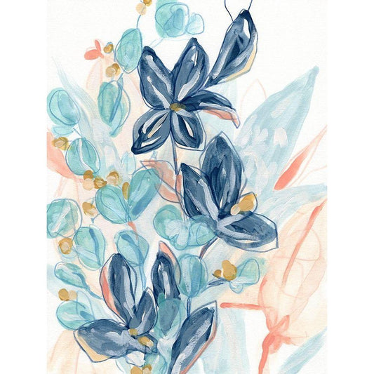 Blooming Blues I Gold Ornate Wood Framed Art Print with Double Matting by Vess, June Erica