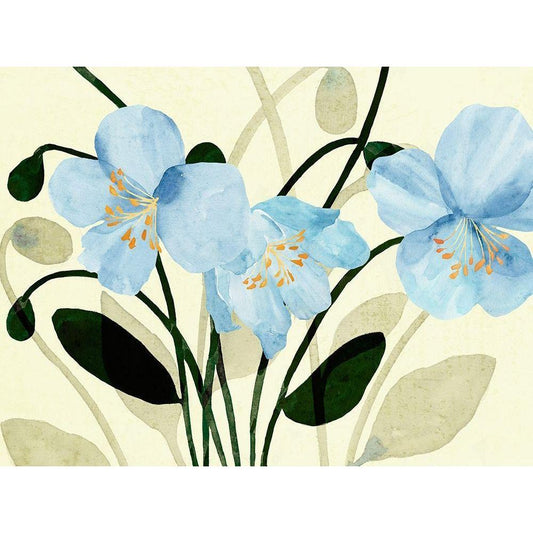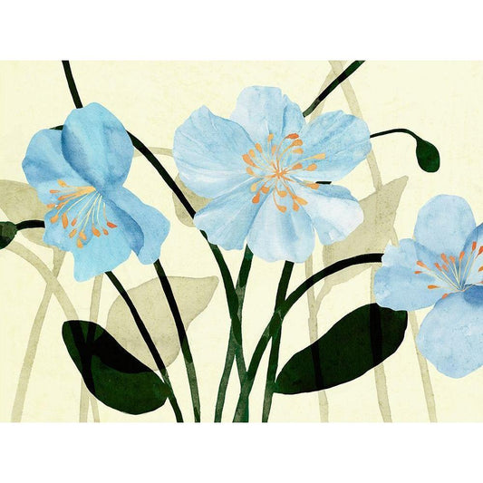 Blue Poppies II Gold Ornate Wood Framed Art Print with Double Matting by Warren, Annie