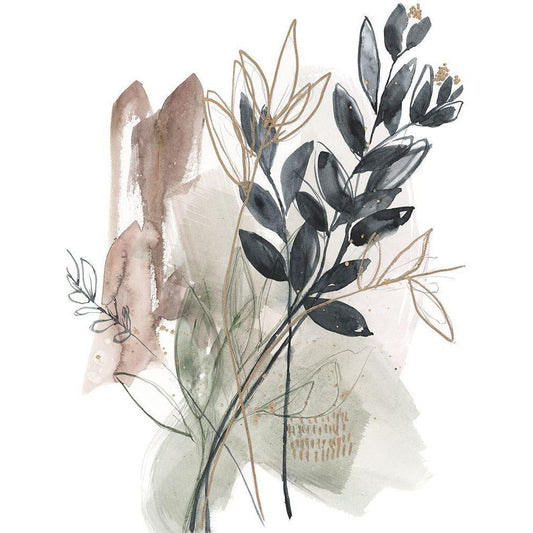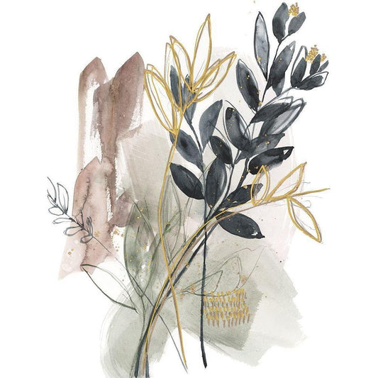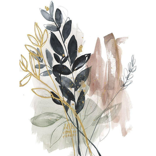 Bundled Leaves I Gold Ornate Wood Framed Art Print with Double Matting by Goldberger, Jennifer