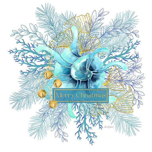 Ocean Wreath Christmas Gold Ornate Wood Framed Art Print with Double Matting by Mitchell, Tina