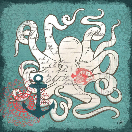 Nautical Octopus Gold Ornate Wood Framed Art Print with Double Matting by K, Onna