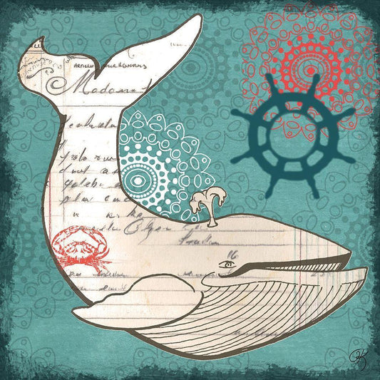 Nautical Whale Gold Ornate Wood Framed Art Print with Double Matting by K, Onna