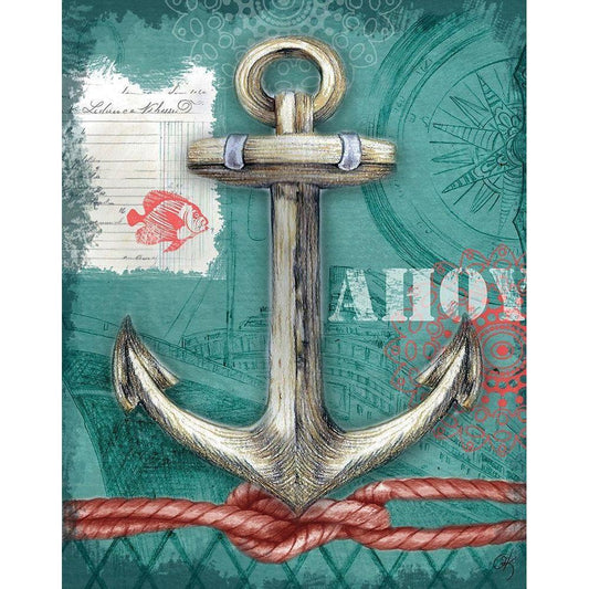 Nautical Anchor Gold Ornate Wood Framed Art Print with Double Matting by K, Onna
