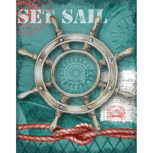 Nautical Wheel Gold Ornate Wood Framed Art Print with Double Matting by K, Onna