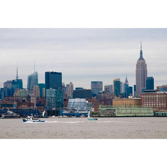 NYC and Hudson River II Gold Ornate Wood Framed Art Print with Double Matting by Berzel, Erin
