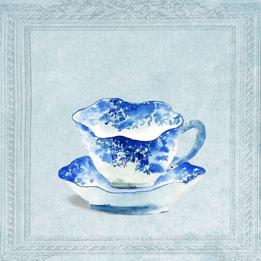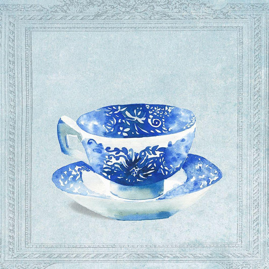 Watercolored Blue and White Tea Cup Gold Ornate Wood Framed Art Print with Double Matting by Dolzhenko, Anna