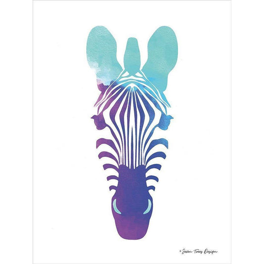 Violet and Teal Zebra Gold Ornate Wood Framed Art Print with Double Matting by Seven Trees Design