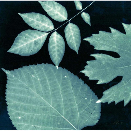 Teal Sunprint Leaves Gold Ornate Wood Framed Art Print with Double Matting by Zamudio, Dan
