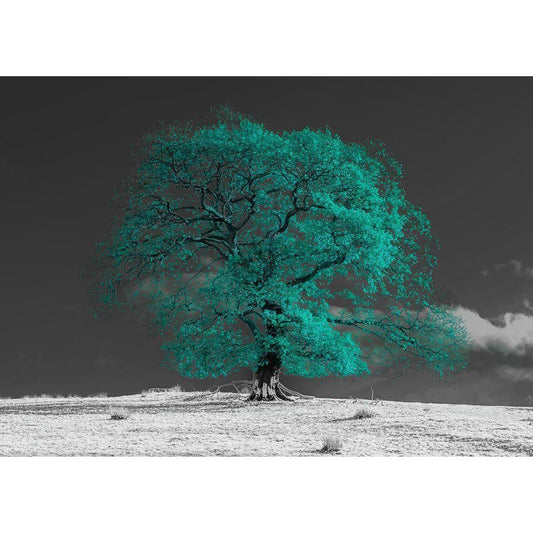 Tree on a hill-teal Gold Ornate Wood Framed Art Print with Double Matting by Frank, Assaf